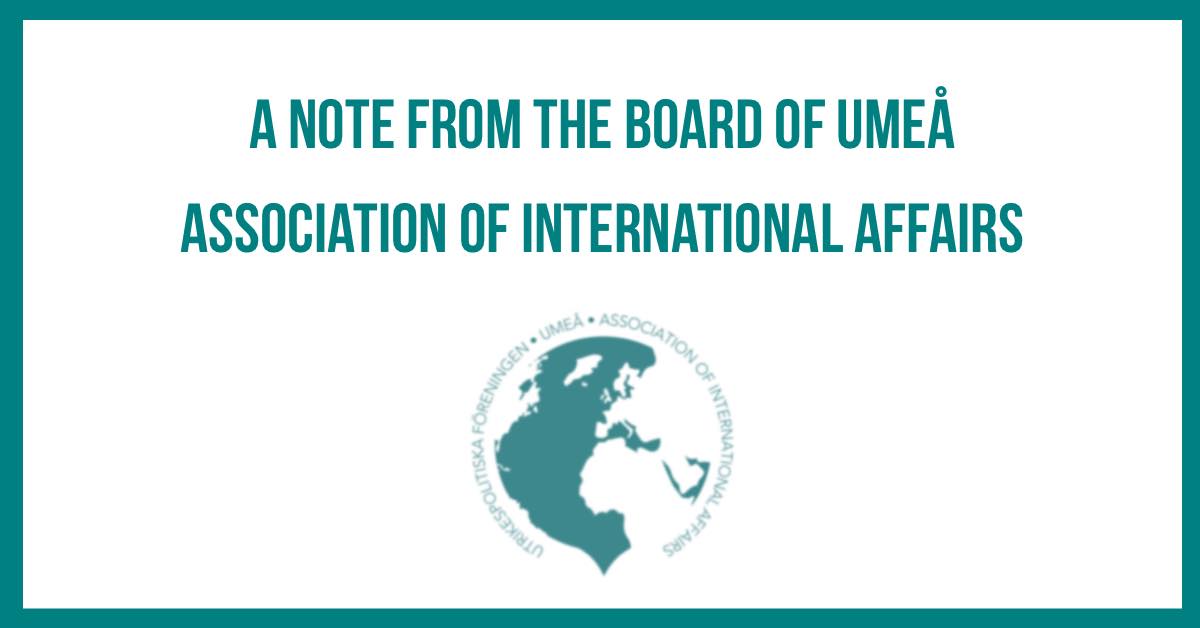 We have been very lucky to have been able to operate on campus this far into the semester. Now we have reached a point where it is not possible anymore. Because of the current spread of Covid-19 in Västerbotten, Folkhälsomyndigheten decided to introduce local restrictions earlier this week. It is now very important that we all put in an effort to decrease the spread of the virus. The board of UAIA has therefore decided to move all of our planned meetings and activities into the digital sphere. We would therefore like to encourage you to follow us on our social medias, where we will post about future lectures and hopefully be able to give some personal updates from our board.